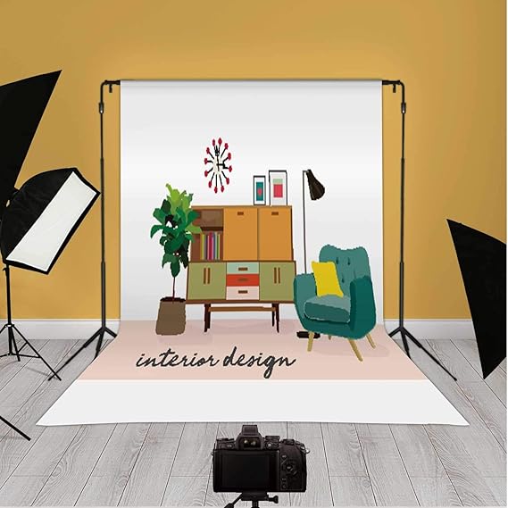 Amazon Com Interior Design Mid Century Modern Furniture Design Living Room Colorful 1950 1960 Style Backdrop For Photo Video Background 10ft X 20ft Camera Photo