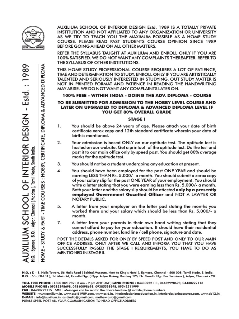 Auxilium School Of Interior Design Chennai Courses Fees