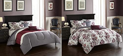 Casa Rebecca Reversible Comforter King Burgundy Gray White