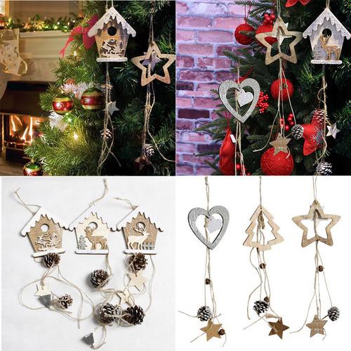 Wooden Christmas House Cabin Hanging Decor Tree Decoration Random