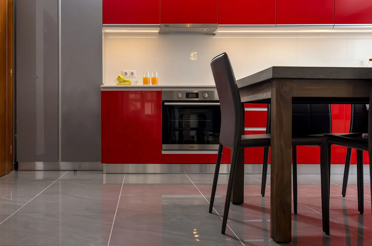 Armstrong Commercial Flooring For A Contemporary Kitchen With A Coffered Ceiling And Arjay Residence By Dochia Interior Design Homeandlivingdecor Com