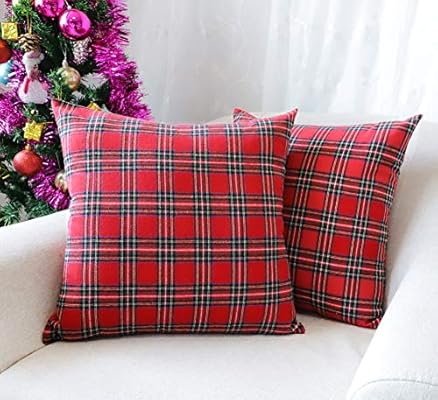 4th Emotion Set Of 2 Christmas Scottish Tartan Plaid Throw Pillow