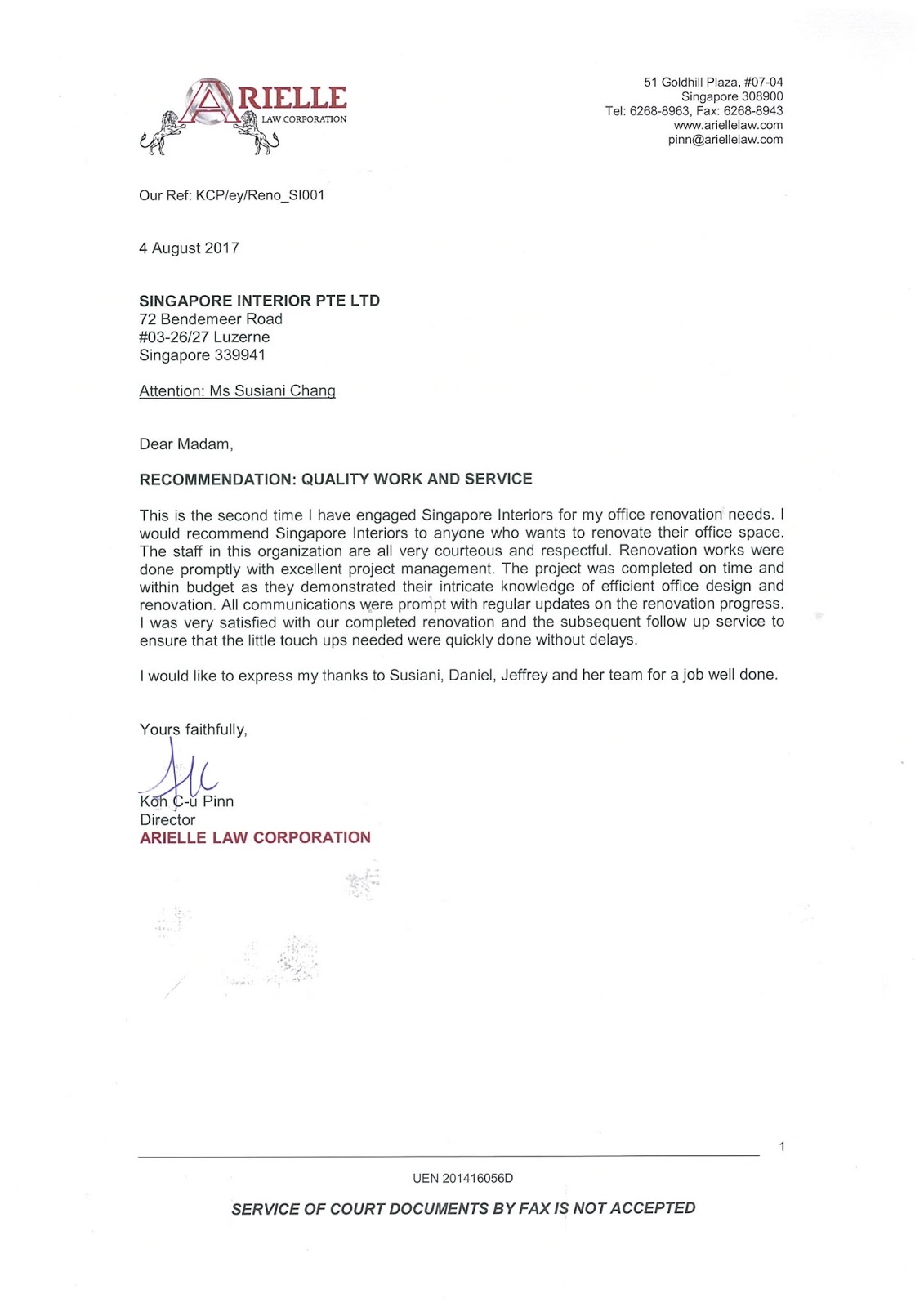 Client Testimonials Office Interior Design Singapore Apcon Pte Ltd