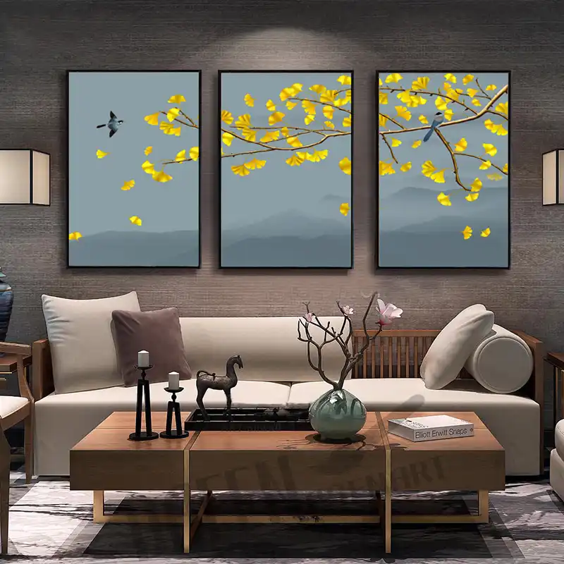 Canvas Painting Posters Wall Art Pictures Neo Chinese Style Ginkgo