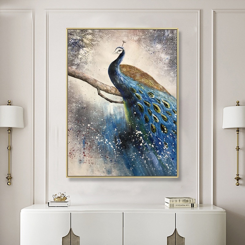 Modern Neo Chinese Style Art Hand Painted Oil Paintings Peacock