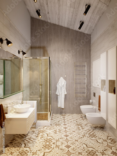 Rustic Provence Loft Bathroom Shower Wc Room Interior Design With
