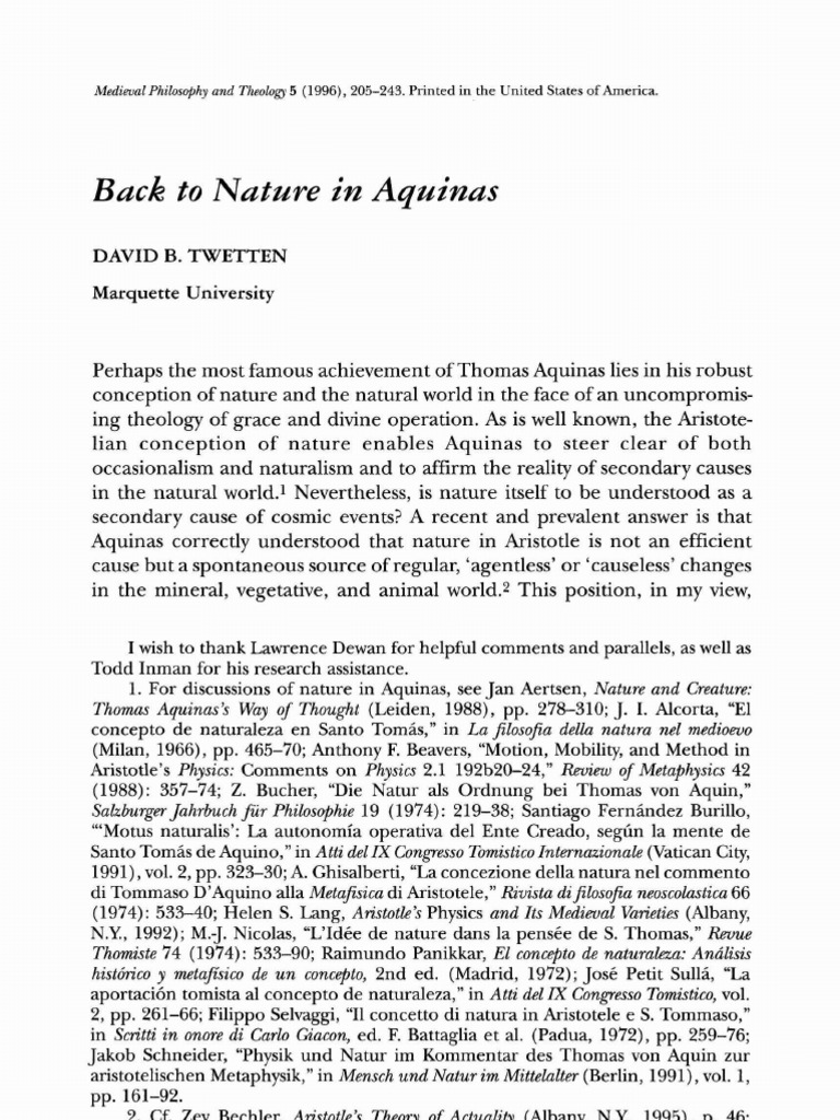 Twetten Article Back To Nature In Aquinas Causality Thomas